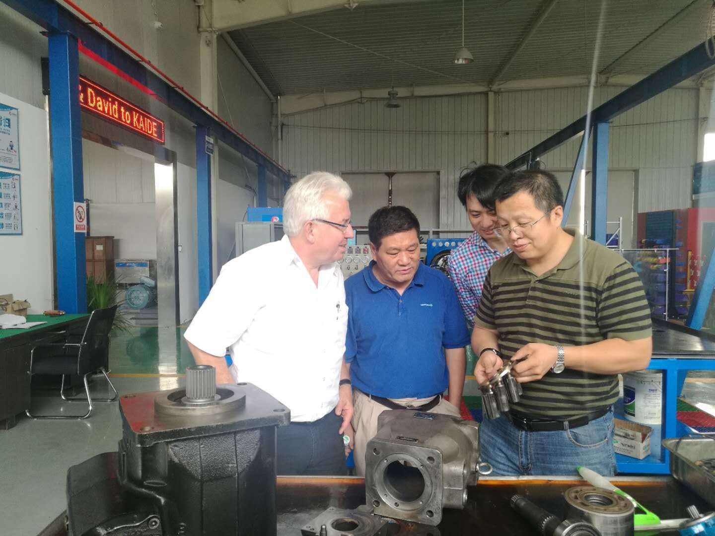 繼林德液壓德國前培訓(xùn)中心及售后服務(wù)部長Michael Zivkovic 到訪后,9月6日,凱德液壓又迎來另一位國際友人美國派克漢尼汾 德國 PV泵 經(jīng)理 Ralf Dobritzsch & David Li 以及 派威機電 彭博士的蒞臨到訪。在參觀了解完我公司的工位布局、業(yè)務(wù)內(nèi)容以及企業(yè)長遠規(guī)劃后,Ralf & David 同時給予了高度的肯定,肯定了我企業(yè)在未來的發(fā)展所存儲之潛力,以及具有強大優(yōu)勢的企業(yè)規(guī)劃。隨后,在簡短的技術(shù)分享座談中,Ralf分享了派克公司的發(fā)展歷程以及派克PV在大中華區(qū)的市場布局,在鼓勵凱德液壓的同時,Ralf又詳談了派克液壓在大中華區(qū)近幾年的市場份額的逐年猛增趨勢,也算是給凱德液壓打了一劑強心針?!び破涫拢叵壤淦鳌?,是的!市場很大! 但一個企業(yè),要想走的更遠,還需要整支團隊的強大,戒驕戒躁,在這此起彼伏的市場經(jīng)濟中,保持一顆‘’匠心" ,以質(zhì)量求生存,以實力贏未來,全心全意為新老客戶提供專業(yè)高品質(zhì)的液壓系統(tǒng)服務(wù)!