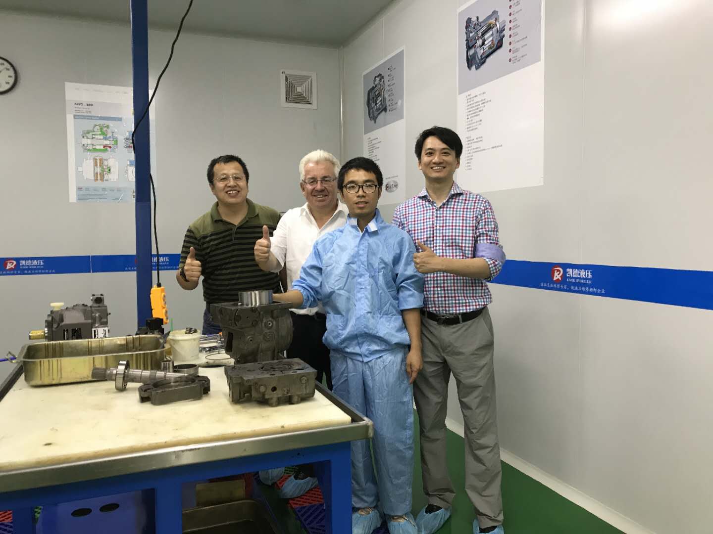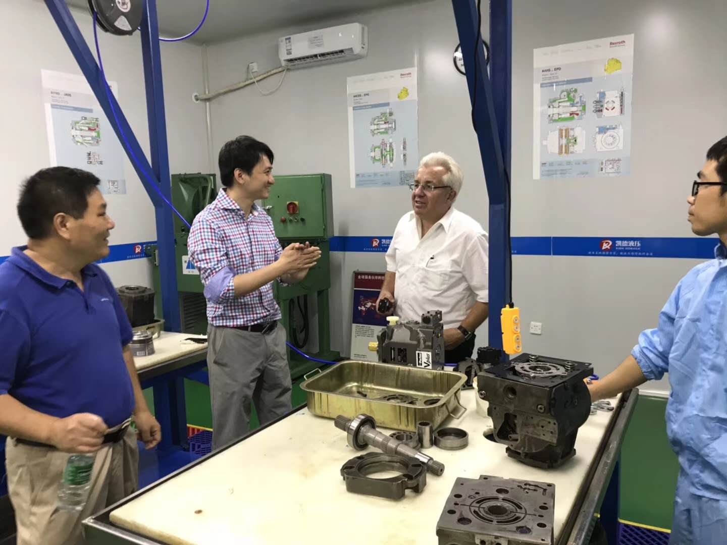 繼林德液壓德國前培訓(xùn)中心及售后服務(wù)部長Michael Zivkovic 到訪后,9月6日,凱德液壓又迎來另一位國際友人美國派克漢尼汾 德國 PV泵 經(jīng)理 Ralf Dobritzsch & David Li 以及 派威機電 彭博士的蒞臨到訪。在參觀了解完我公司的工位布局、業(yè)務(wù)內(nèi)容以及企業(yè)長遠規(guī)劃后,Ralf & David 同時給予了高度的肯定,肯定了我企業(yè)在未來的發(fā)展所存儲之潛力,以及具有強大優(yōu)勢的企業(yè)規(guī)劃。隨后,在簡短的技術(shù)分享座談中,Ralf分享了派克公司的發(fā)展歷程以及派克PV在大中華區(qū)的市場布局,在鼓勵凱德液壓的同時,Ralf又詳談了派克液壓在大中華區(qū)近幾年的市場份額的逐年猛增趨勢,也算是給凱德液壓打了一劑強心針?!び破涫拢叵壤淦鳌?,是的!市場很大! 但一個企業(yè),要想走的更遠,還需要整支團隊的強大,戒驕戒躁,在這此起彼伏的市場經(jīng)濟中,保持一顆‘’匠心" ,以質(zhì)量求生存,以實力贏未來,全心全意為新老客戶提供專業(yè)高品質(zhì)的液壓系統(tǒng)服務(wù)!