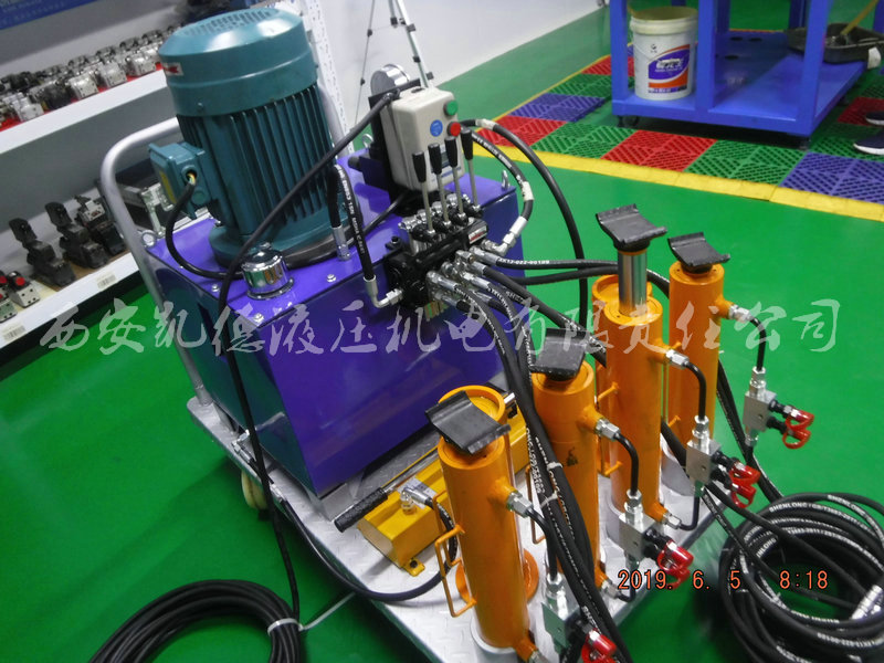 此次承接軍工雷達測試車輛調(diào)平支撐裝置為人工調(diào)平系統(tǒng),主要應(yīng)用于實驗研究方向和車輛標定工作。調(diào)平系統(tǒng)構(gòu)成:由泵站、控制閥組、調(diào)平支撐油缸、定制卡爪輔件等組成。采用分件搬運,現(xiàn)場組合的設(shè)計原則,單件重量不大于30Kg,便于搬運,操作靈活。