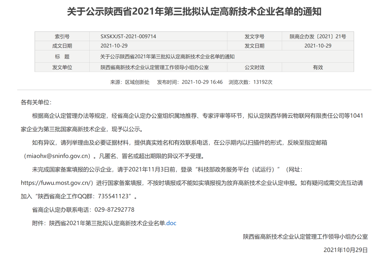 依據(jù)科技部、財(cái)政部、國家稅務(wù)總局《高新技術(shù)企業(yè)認(rèn)定管理辦法》、《高新技術(shù)企業(yè)認(rèn)定管理工作指引》的規(guī)定,經(jīng)陜西省科技廳、陜西省財(cái)政廳、國家稅務(wù)總局陜西省稅務(wù)局組織專家嚴(yán)格的審查,我司憑借過硬的科研實(shí)力和創(chuàng)新能力,榮獲國家“高新技術(shù)企業(yè)”稱號(hào),從此正式邁入國家高新技術(shù)企業(yè)行列。